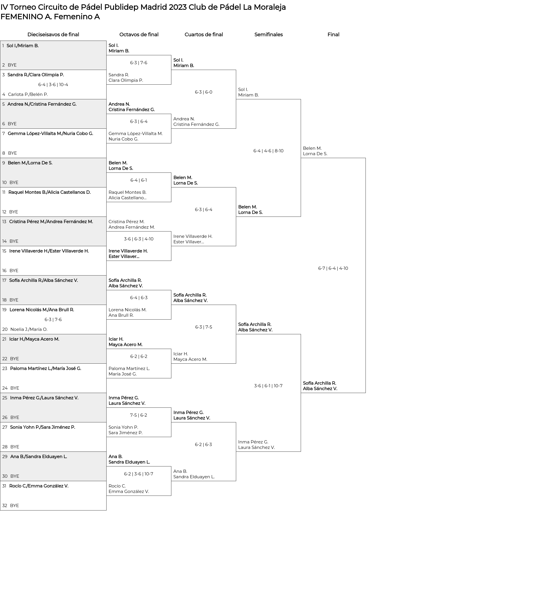 Cuadro principal Femenino A