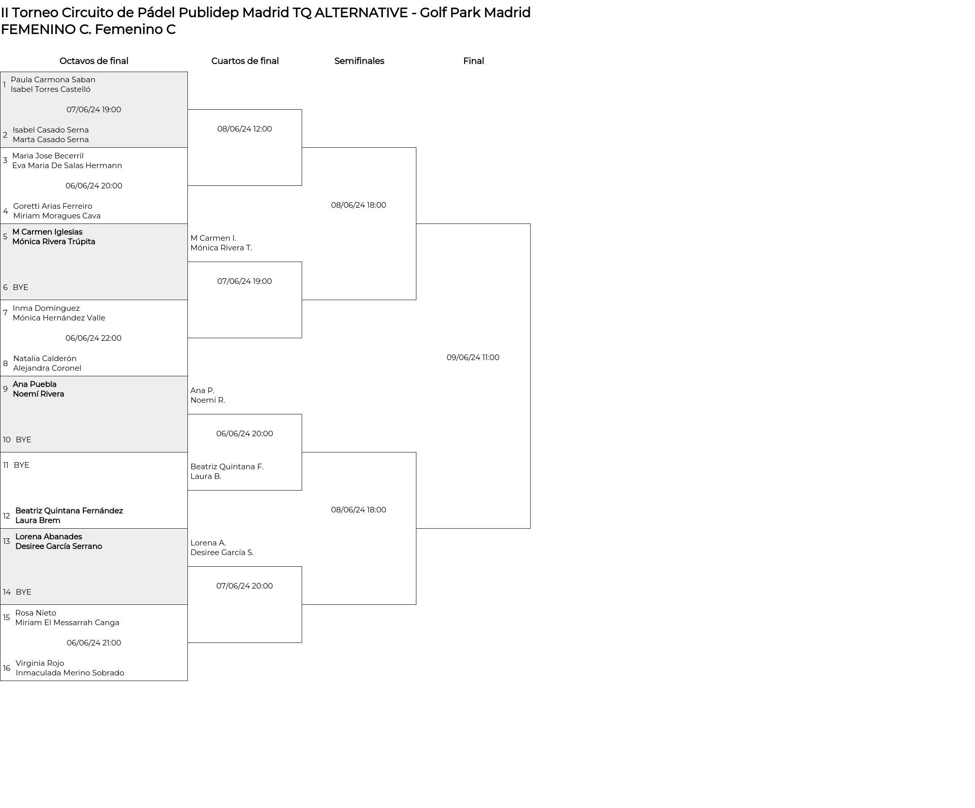 Femenino C . Desde 06/06/2024 20:00 hasta 09/06/2024 13:00