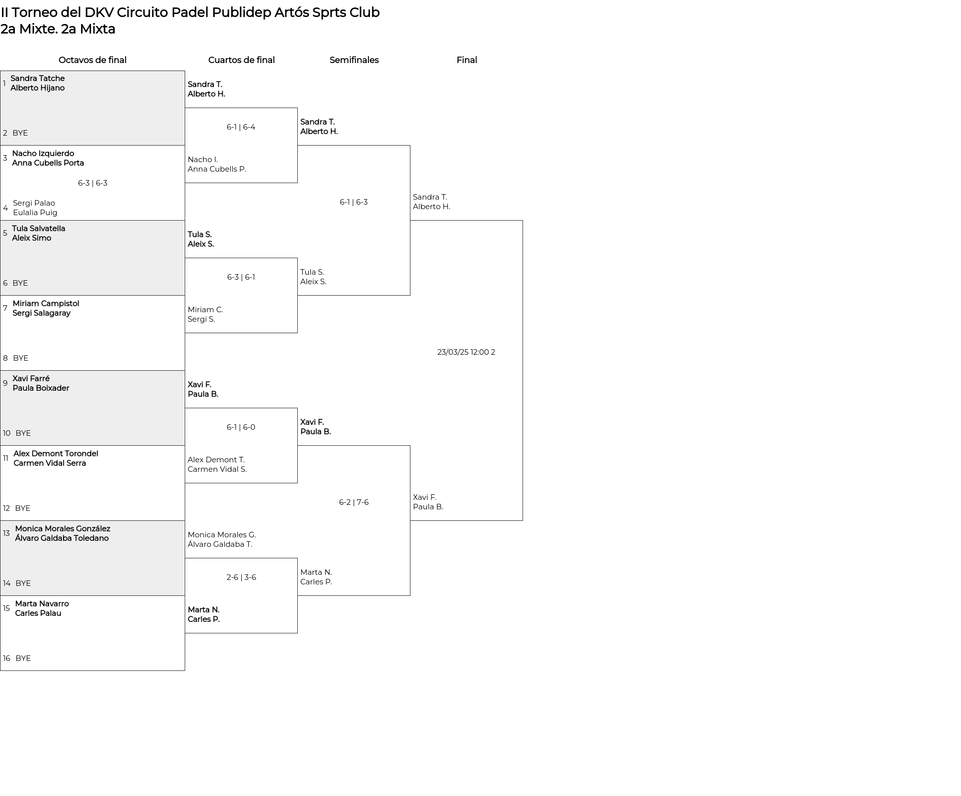 Cuartos de final (1 match/game)