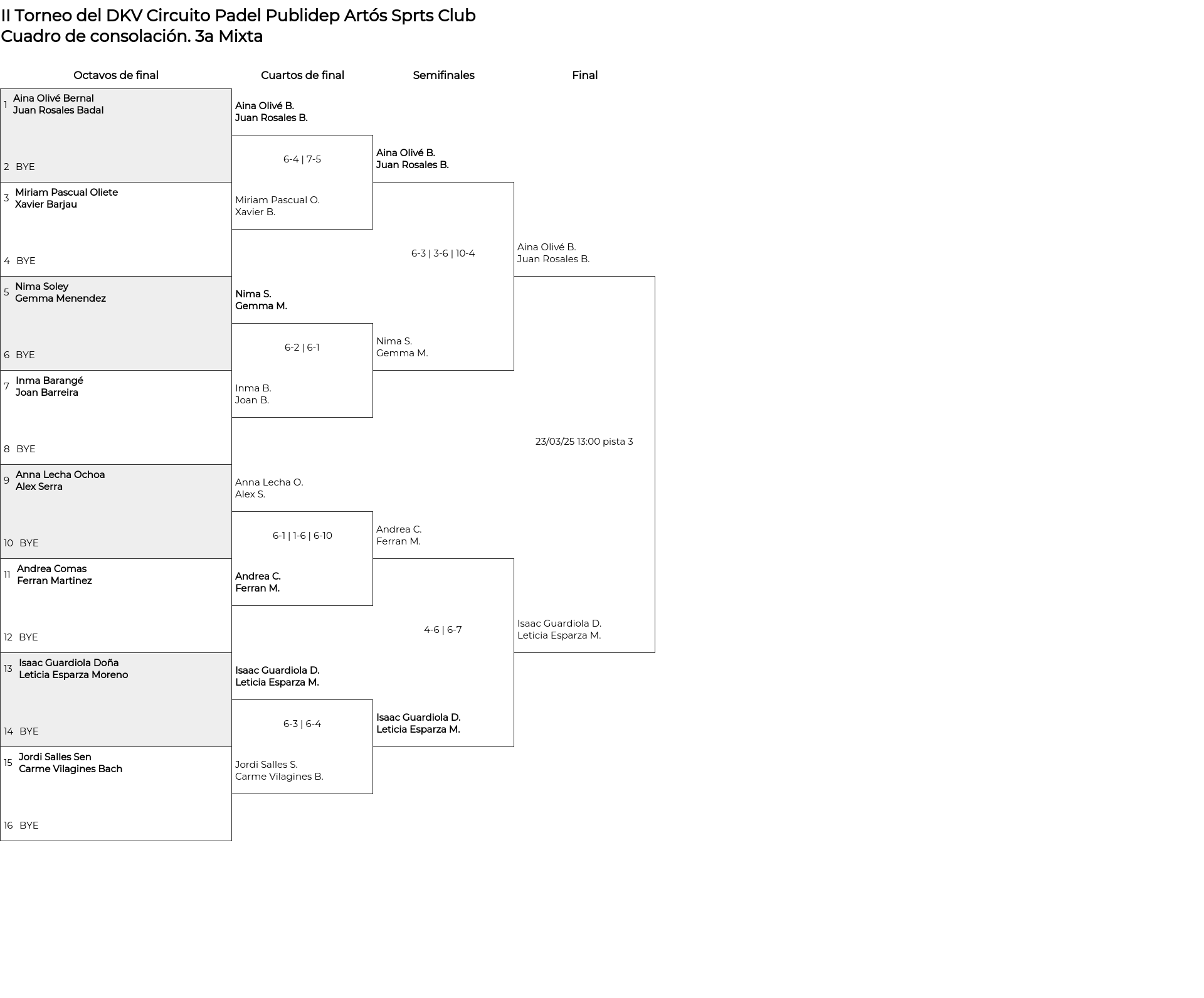 Cuartos de final (1 match/game)