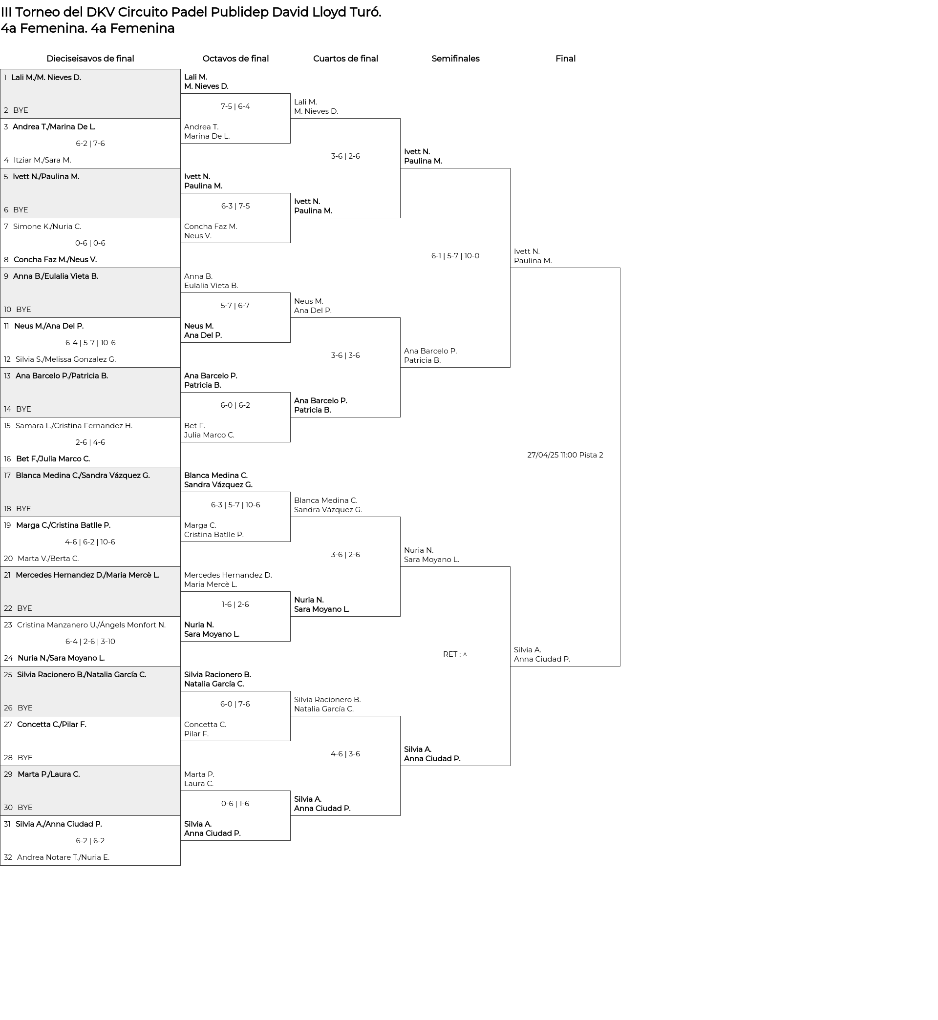 4a Femenina . Desde 21/04/2025 10:00 hasta 27/04/2025 16:00