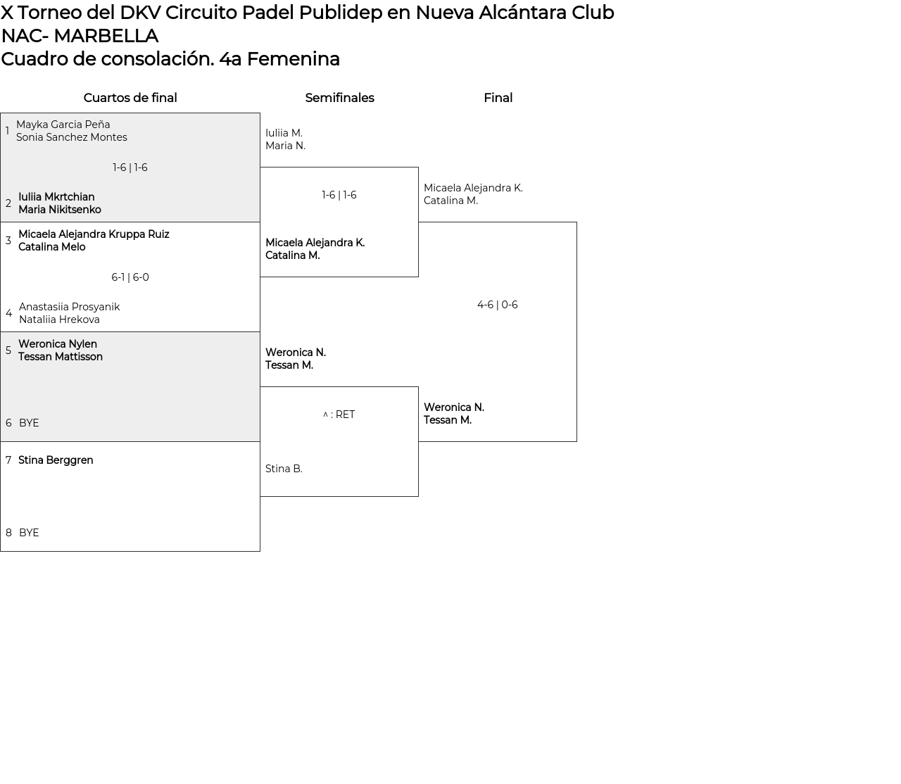 Cuadro de consolación 4a Femenina