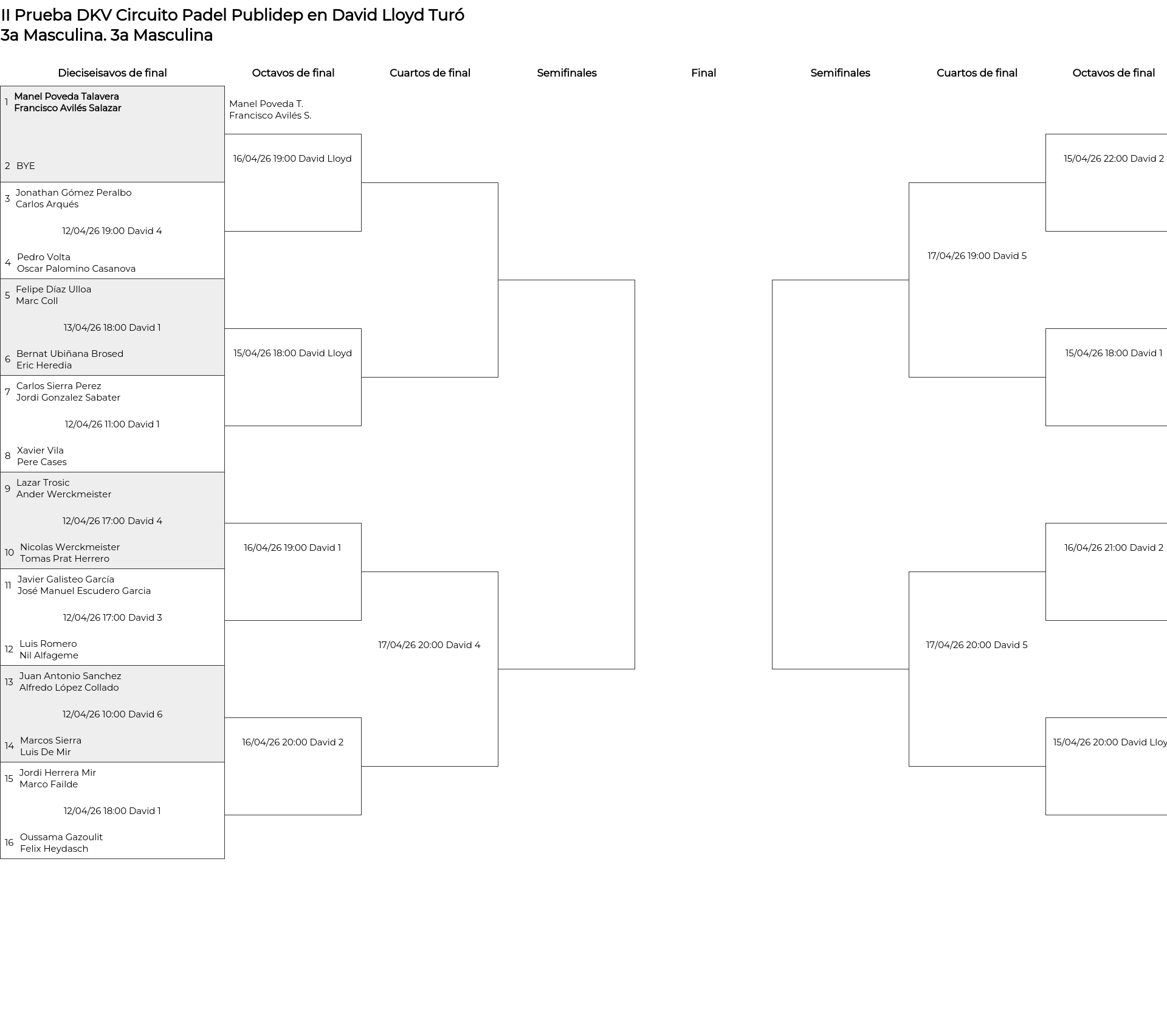 3a Masculina . Desde 12/04/2026 10:00 hasta 19/04/2026 15:00
